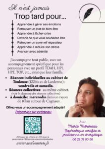 pour (re)découvrir vos propres ressources, s’épanouir et améliorer votre qualité de vie.