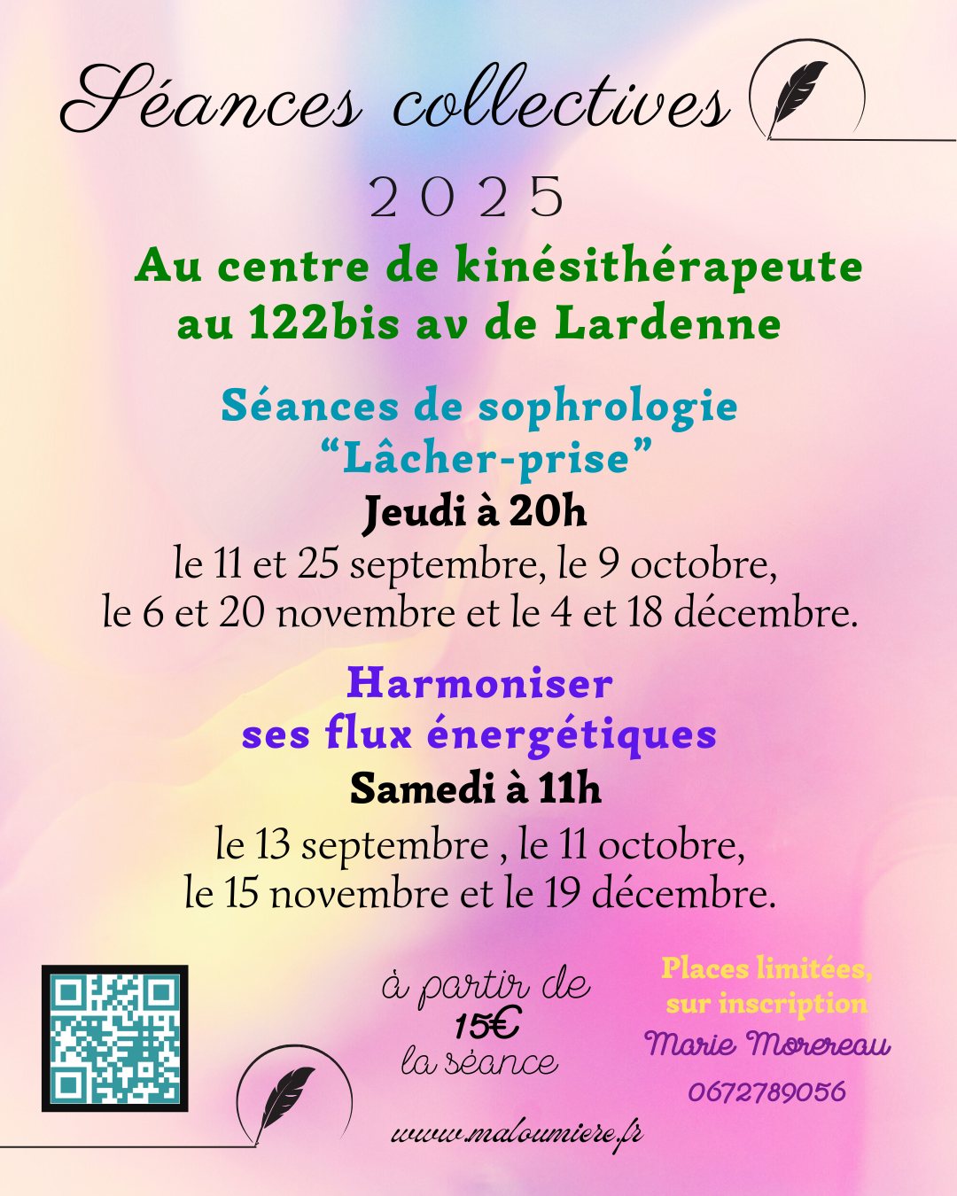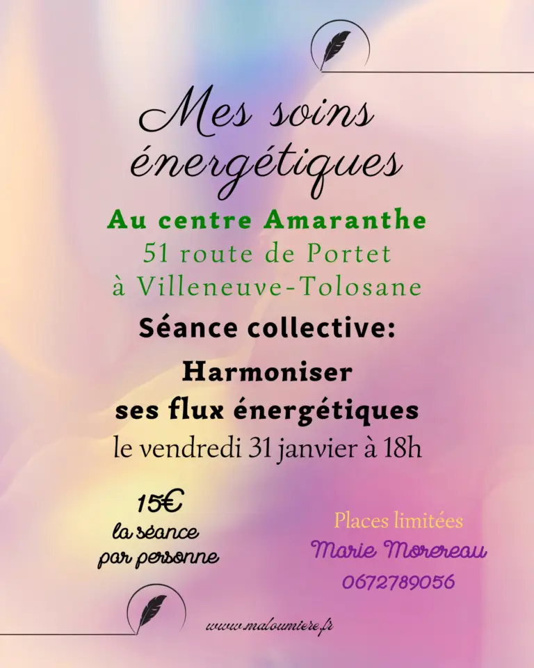Les séances collectives « Harmoniser ses flux énergétiques » se déroule un samedi par mois à 11h