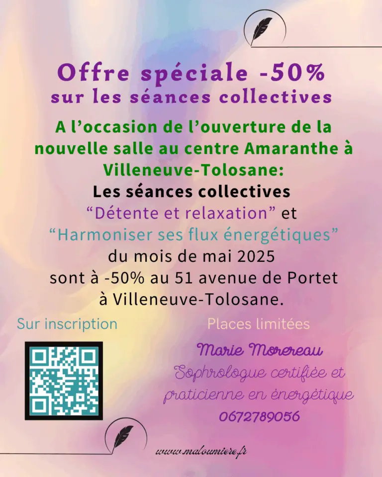 #séancescollectives #détenteetbienêtre #villeneuvetolosane #digitopuncture #sophrologie #soinsenergetiques #meditation #respiration #relaxation #toulouse